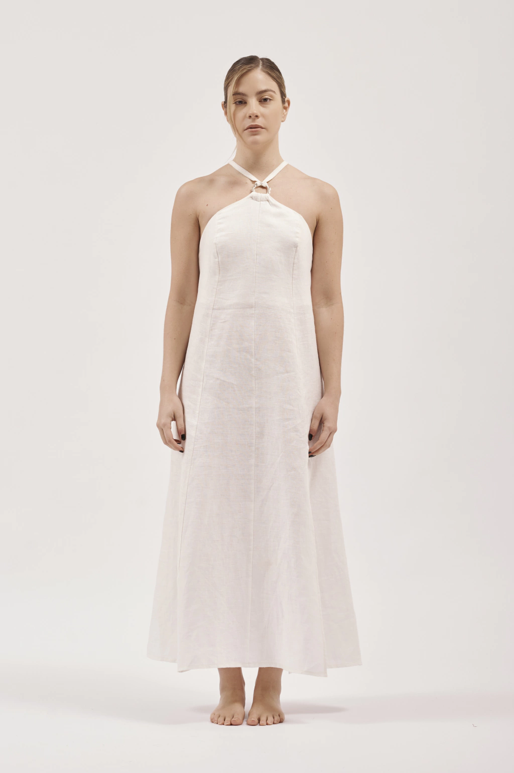 Vestido ideal para cualquier ocasión mismo de noche como de día. Su diseño es atemporal y puede usarse en ambas estaciones aunque es mas propenso para primavera / verano por el tipo de tejido liviano y respirable. Perfecto para un casamiento al aire libre.
